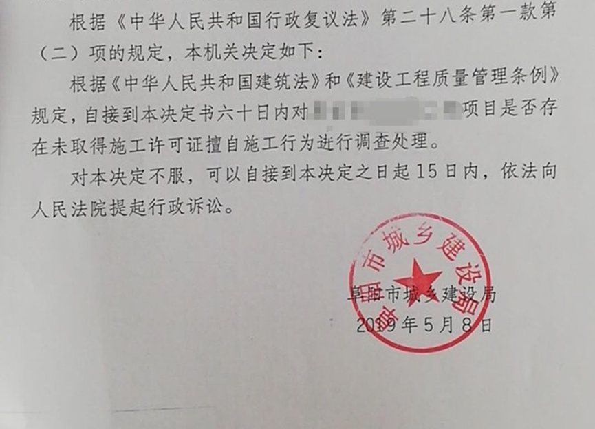 安徽省某市拆迁案例:违法施工查处不理睬?复议责令依法处理