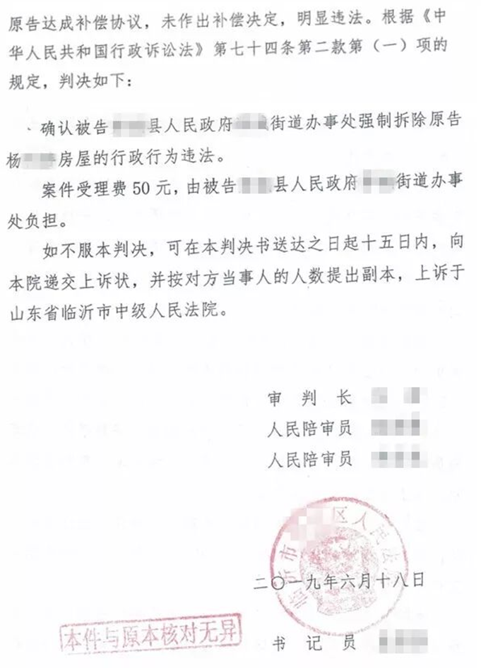 三、案件结果:法院采纳律师意见,确认强拆违法
