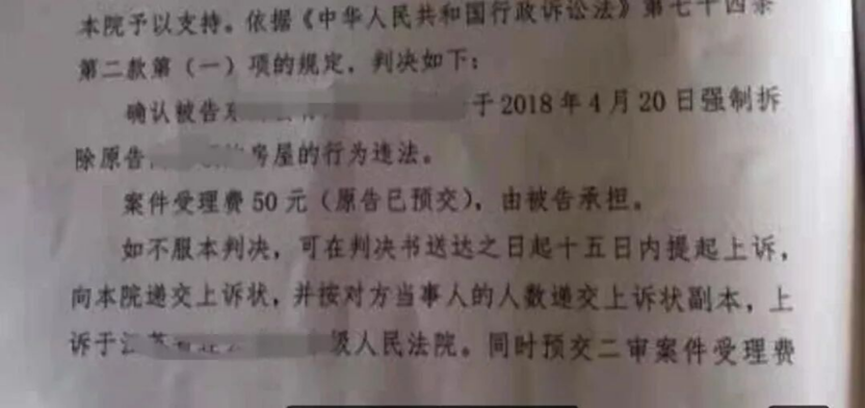 江苏宿迁拆迁案例:三天通知就强拆?法院判决确认镇政府强拆行为违法
