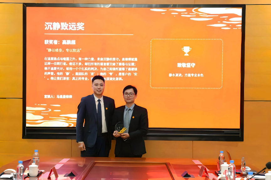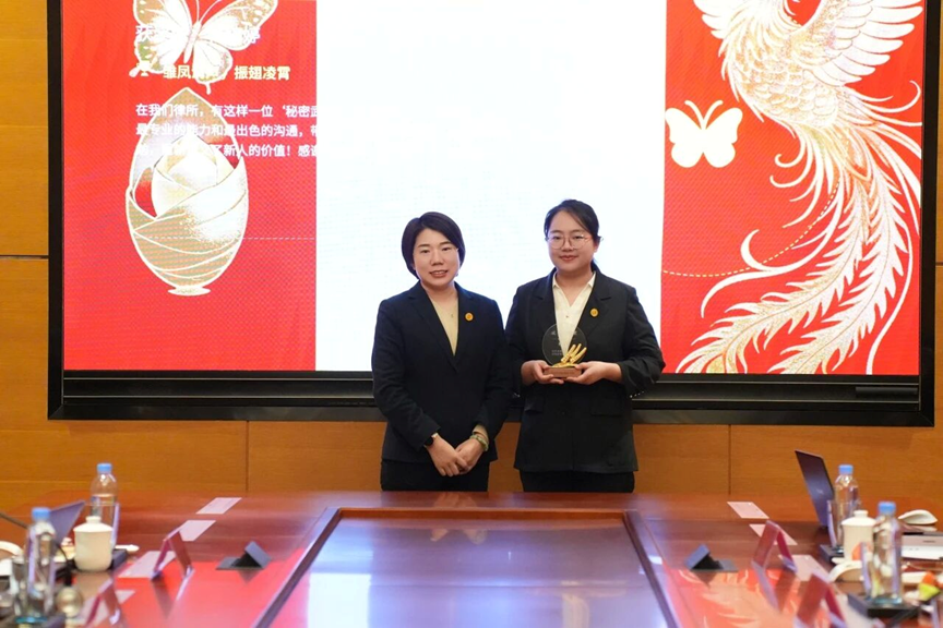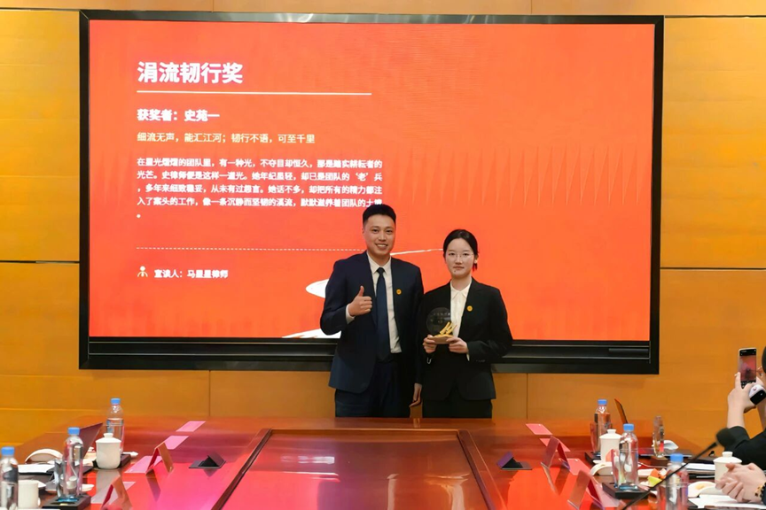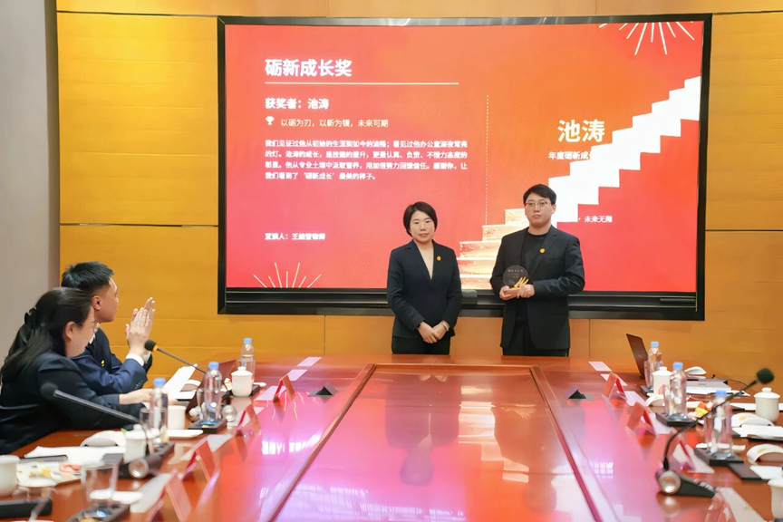 年度盛典的温情氛围中,最令人期待的 “荣誉盛典” 环节重磅来袭!王维雪主任与合伙人一同为律所优秀成员颁发奖杯,灯光聚焦下,奖杯熠熠生辉,映照着获奖者眼中的坚定与荣光。既是对获奖者过去一年辛勤付出的肯定与嘉奖,也为全体同仁树立了学习的榜样。掌声与喝彩声中,不仅见证着个人的成长荣光,更传递着 “见贤思齐、共同进步” 的团队心声、传递着律所 “表彰先进、鼓励进取” 的价值导向。获奖者们手捧奖杯,脸上洋溢着自豪的笑容,纷纷表示将把这份荣誉化为前行的动力,在未来的工作中继续发光发热。