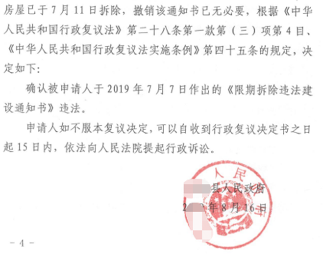 章然典型案例分享:街道办因超越法定职权发限拆通知?复议机关确认:违法!