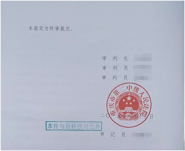 最终,重庆市第二中级人民法院支持了王维雪律师的观点,裁定如下: