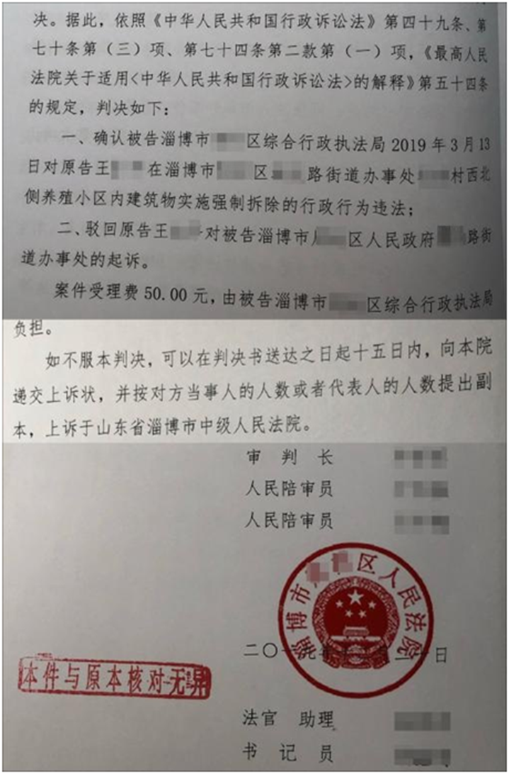 章然律师胜诉案例:淄博市某养殖场被强拆,法院确认违法