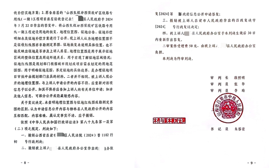 一、撤销山西省吕梁市某区人民法院行政判决;